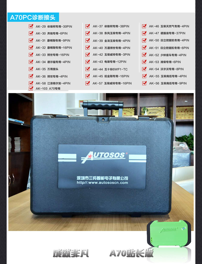 柴油測神A70站長版解碼器是深圳三羚公司根據(jù)市場需求為社會維修廠提供的一款基于技術服務支持的綜合性汽車電腦診斷儀,也是一款綜合性工程機械診斷儀,支持手機版診斷儀,擁有國六DPF高溫再生和SCR后處理試驗臺功能,旨在解決商用車后市場技術需要提升的維修廠,深圳三羚公司汽車電腦診斷儀十五年堅持自主研發(fā),先后榮獲慧聰網(wǎng)商用車十佳售后服務企業(yè),內(nèi)燃機行業(yè)協(xié)會授予的商用車售后服務貢獻獎,從第一臺手持式A30C柴油車解碼器到測神30PC柴油車解碼器再到測神A60PC柴油車解碼器,到測神A70PC站長版柴油解碼器,一直以檢測精準,測試全面,技術精湛,服務至上的經(jīng)營理念深受廣大維修人員推崇,迄今為止有三千多家柴油測神A70站長版解碼器用戶加盟三羚服務站,成為當?shù)貐^(qū)域汽修龍頭中堅力量,因其過硬的技術讓主機廠家主動為其設立服務站,為國家汽車后市場努力奉獻。